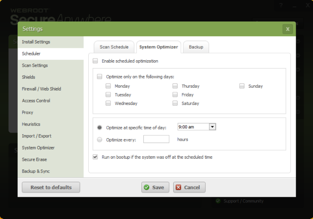 The System Optimizer Scheduler lets you schedule when the System Optimizer runs on your devices to wipe away traces of your online activity and reclaim hard drive space by removing your browser cache, cookies, and temporary files.